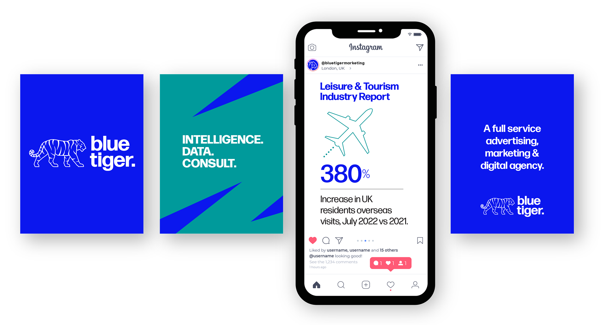 The social campaign presents clear, data-led storytelling to highlight Blue Tiger’s performance across multiple sectors. Key results are distilled into concise statistics and paired with a consistent set of icons, allowing complex data to be communicated quickly and effectively. By putting measurable outcomes front and centre, the campaign builds credibility, demonstrates proven impact, and delivers content optimised for social channels.