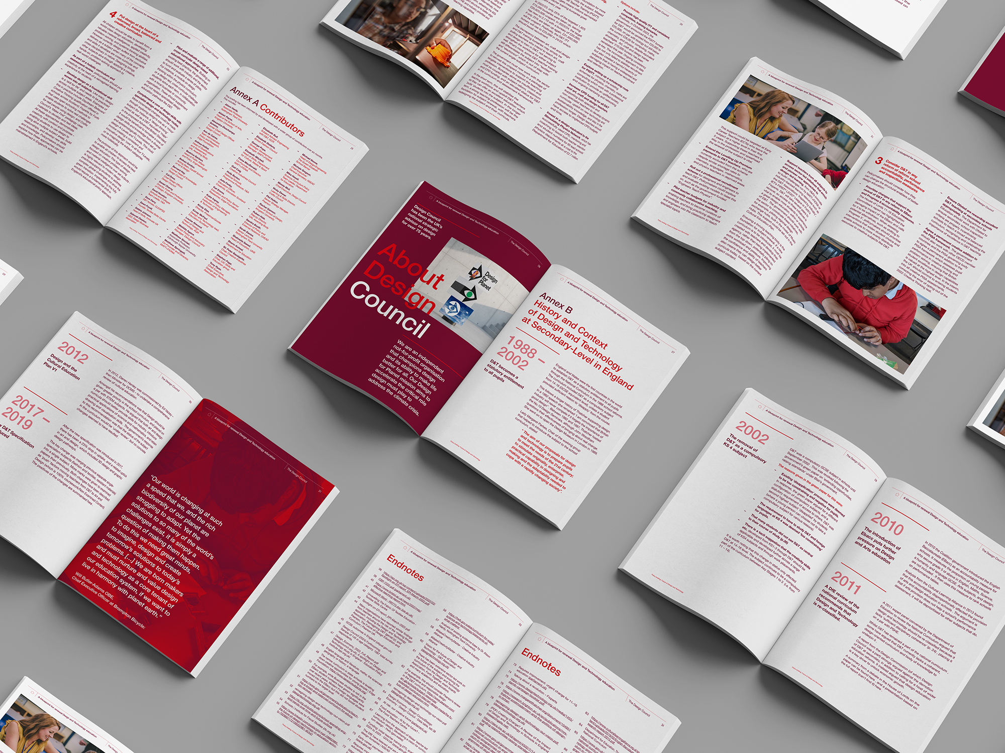 To offset the text-heavy content, infographics, maps and key data points were integrated into the brochure, helping to present complex information in a clear and engaging way. Alongside this, posters were created to reinforce the Blueprint for Renewal’s mission, centring children and their experience of the design and technology classroom.