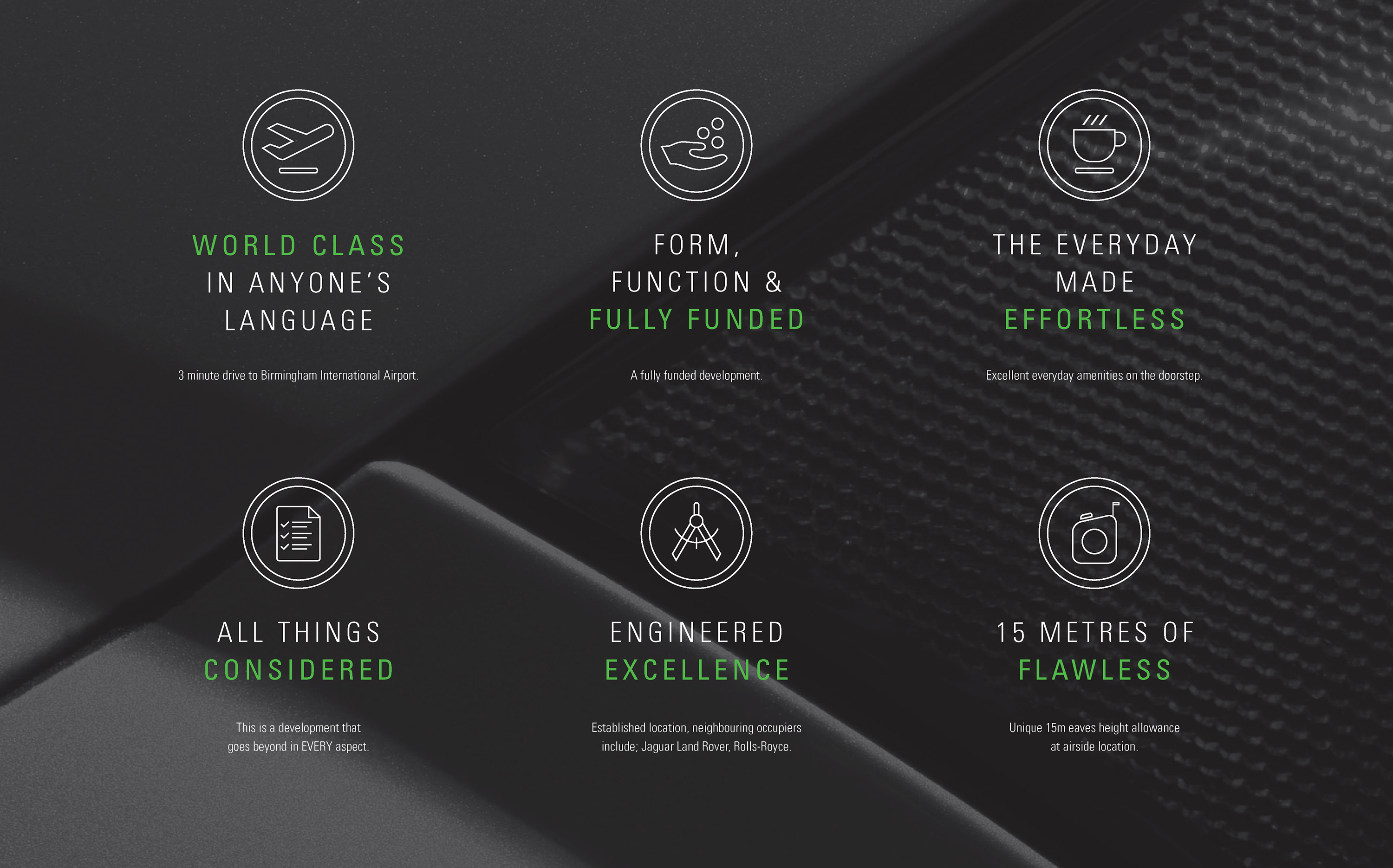 A suite of modern, linear icons was created to reflect the development’s standout features and core USPs. Integrated throughout the marketing campaign, these icons helped to reinforce the brand identity, simplify messaging, and create a visually cohesive experience across digital and print.